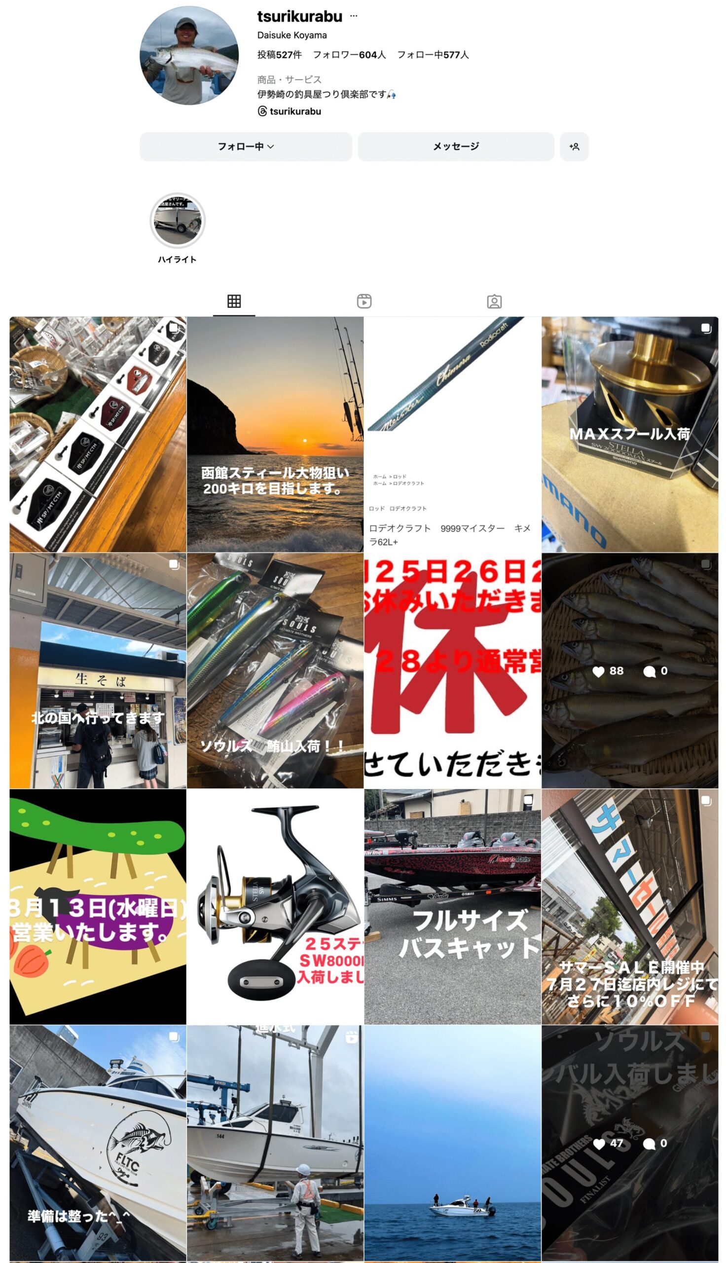 現在は、ルアー用品、ソルトルアー、フライ用品、ボート、トレーラー販売を中心に展開しています。